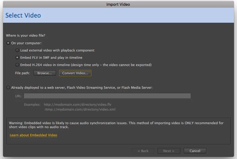 I've seen on searches that the FLV and SWF formats have been removed from Adobe Media Encoder. I'd like to put a video into Adobe Animate to edit and the only options to play and edit in timeline are FLV and SWF. How do I do this?