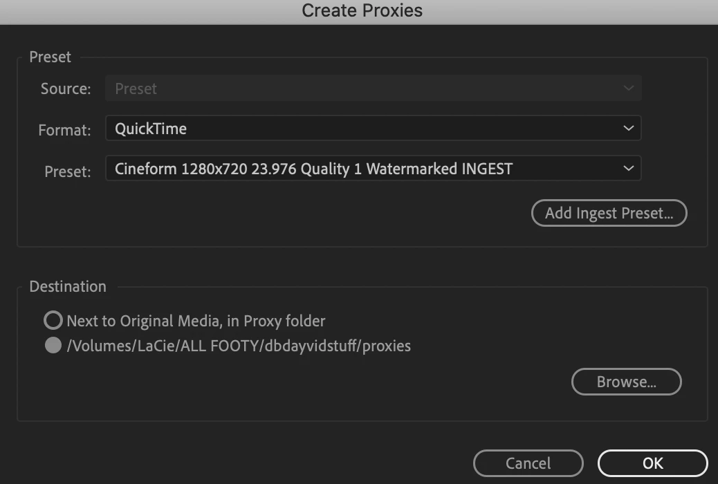 I was trying to create proxies for the first time and I so I used this ingest preset by Matt Johnson