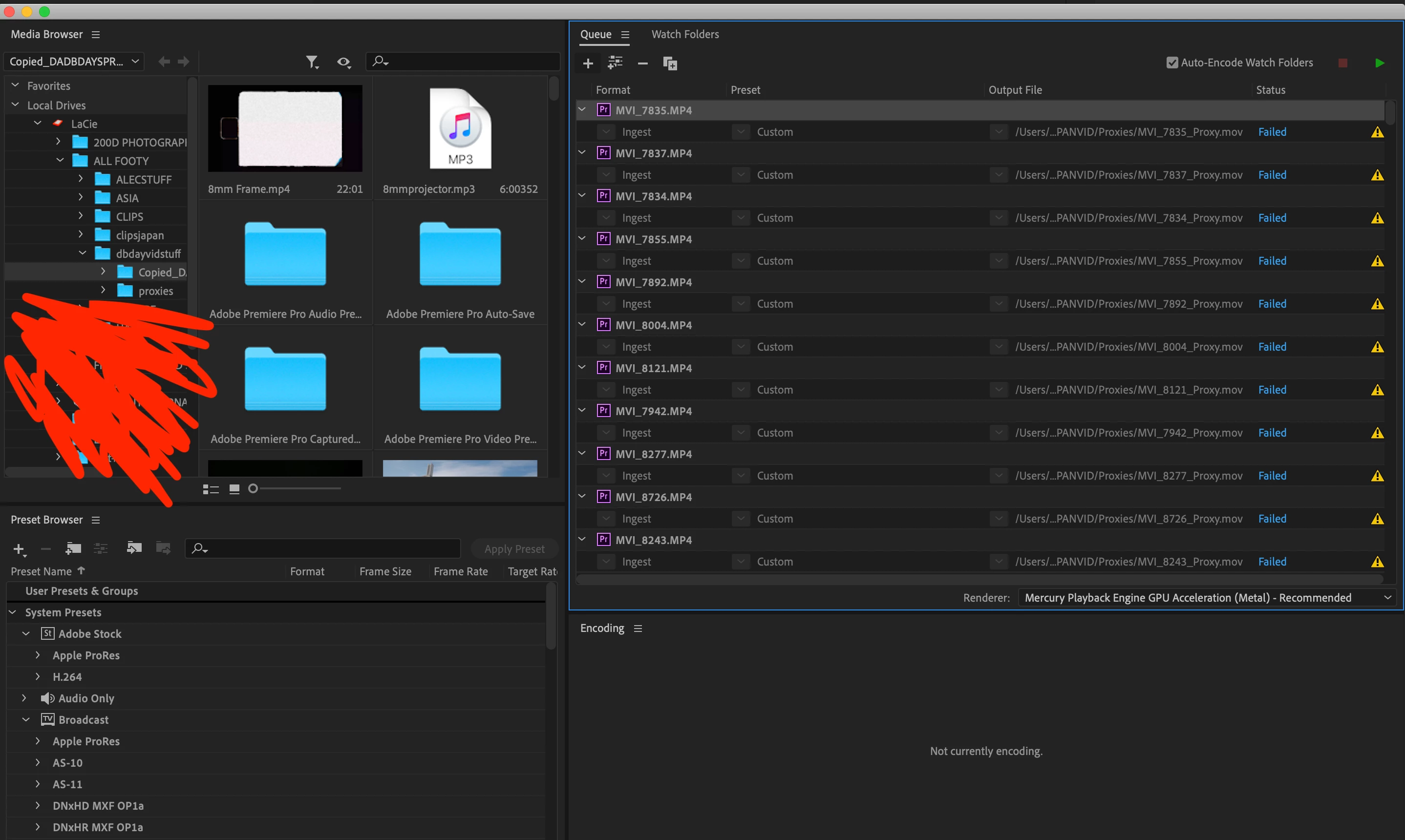 I would really appreciate your help, in terms of how to fix this so that Media Encoder can properly create the Proxy files