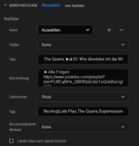 Ich wollte das geschnittene Video nach dem encodieren direkt auf YouTube hochladen.
