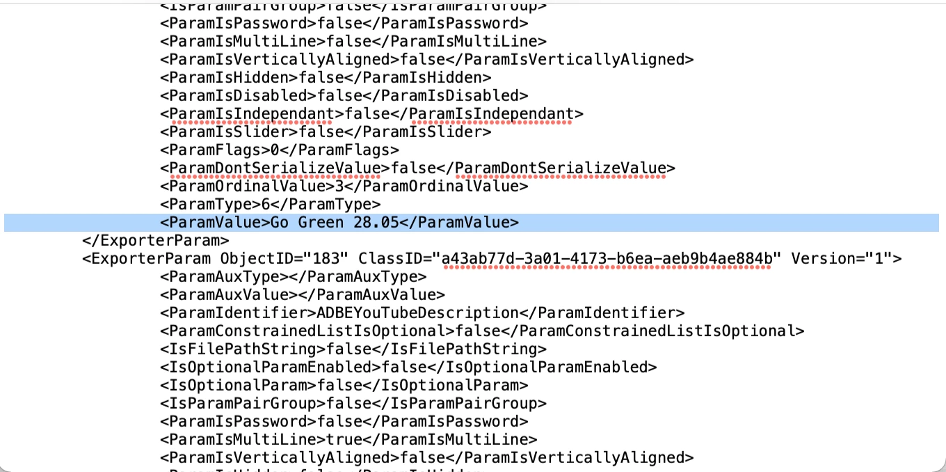 My youtube title + description is always the same, except the dates. I wanted to automate the whole process with a text replacement so found a file responsible for the preset .epr and automator can update the dates for the new Youtube title upload... The problem is even in Media Encoder it shows the new date - Yt title when I just go to Preset Settings but once i'm encoding and uploading a video with this preset... the old date is being shown on youtube. Is there any way to fix it? Maybe a hidden file responsible for this... Clearing cache / temp files / and restarting Media Encoder doesn't help. What could I do?