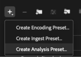 - In the Preset Browser, in the drop down underneath the “+” icon, click on “Create New Analysis Preset”