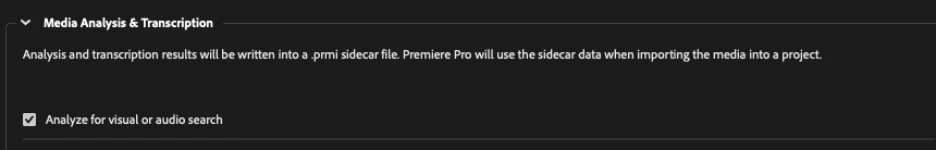 You can now generate audio analysis sidecar files using the new Analysis Preset. This adds audio search alongside existing visual search capabilities in Premiere Pro, allowing editors to quickly find moments based on sounds – like cheering crowds, barking dogs, train engines, or crying – as soon as the media is imported.