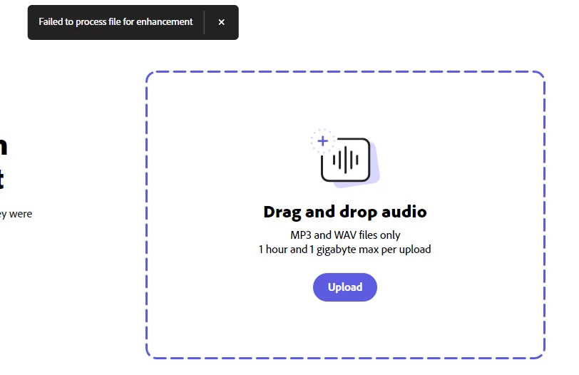 Adobe Podcast Enhance no longer works. There is an infinite loader.