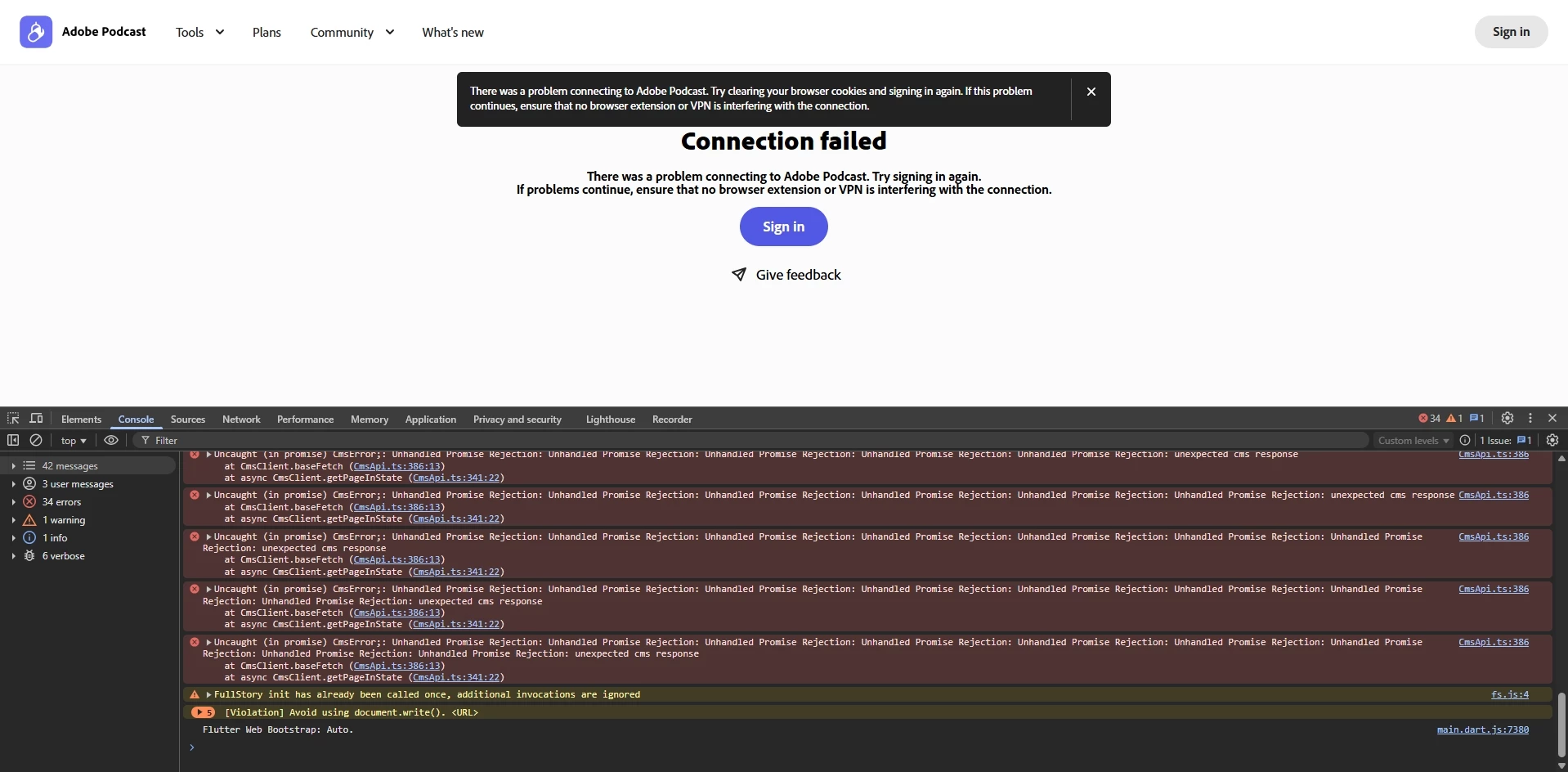 Is something making Adobe Podcast move insanely slow? I have to wait 2 minutes for 5 seconds of audio to buffer out, I get error messages when I try to export audio ("Something went wrong exporting this audio. Please try again"), and when download does work, I have to wait 3 hours to download 65MB? I've really noticed the slowdown over the last few weeks, but today's speed is on another level.