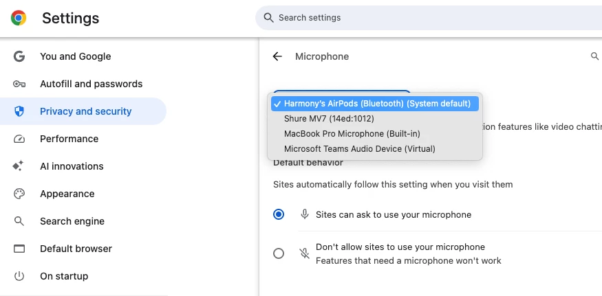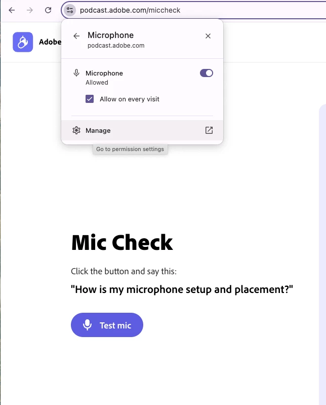 Hi, Adobe Studio does not recognize my Shure MV7+ microphone. It is also not recognized by the Miccheck. Funnily enough, I am dictating this text with the MV seven in the same Chrome browser. Riverside is also working with this same Chrome browser. Even after closing and opening broser and Adobe Podcast Studio, it does not recognize my microphone.