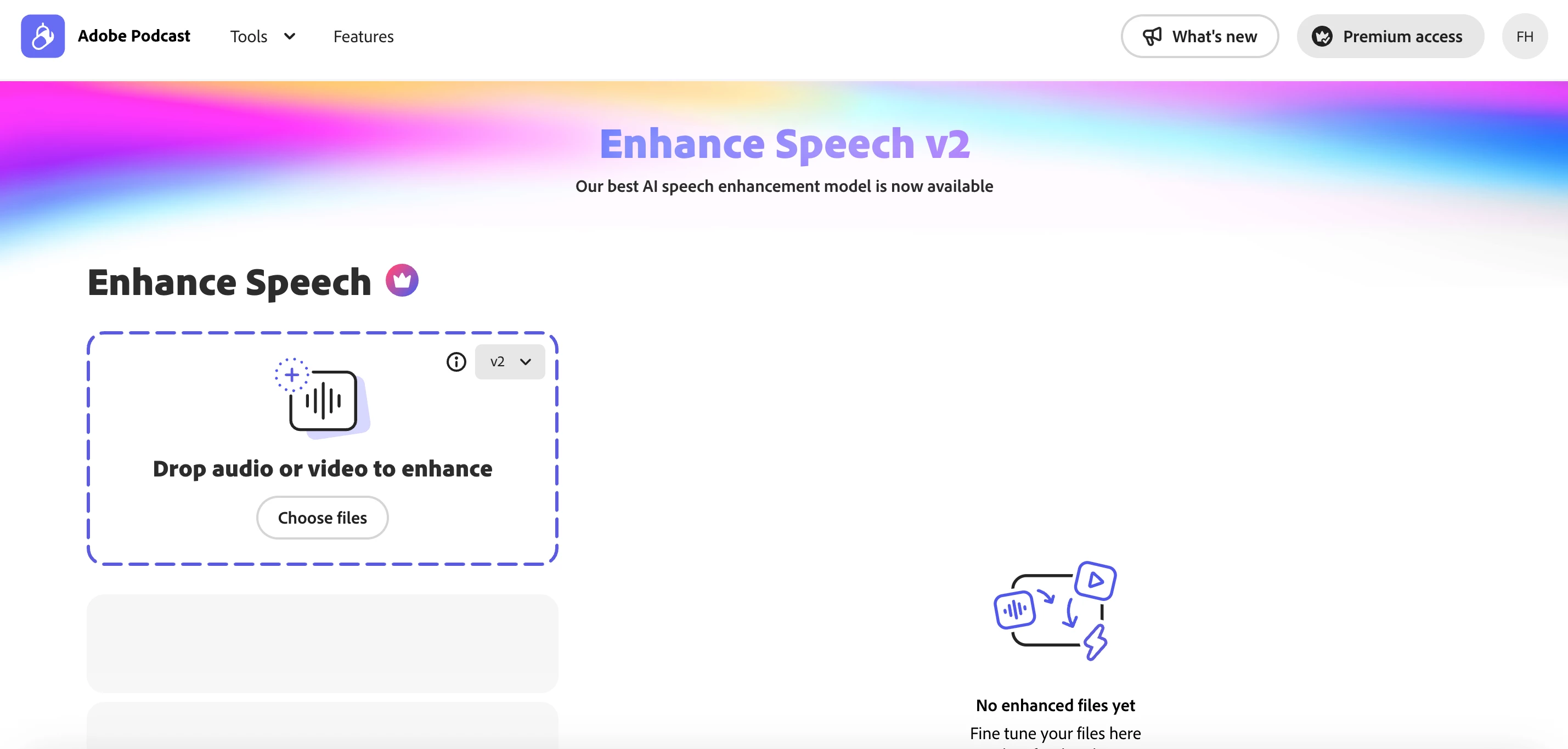 I've been using the enhance speech for a few weeks now but suddenly today it's just not working. After uploading my WAV file (not huge by any means, around 10 minutes long as it usually is), it just hangs and after a while, my audio file disappears and it just reverts back to the original blank state.