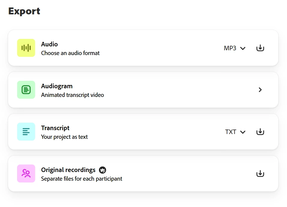 Hi, i want to save seperate (wav) tracks within Adobo Podcast. I have Premium, but i don't see the option. Does anyone have the same problem and has a solution?