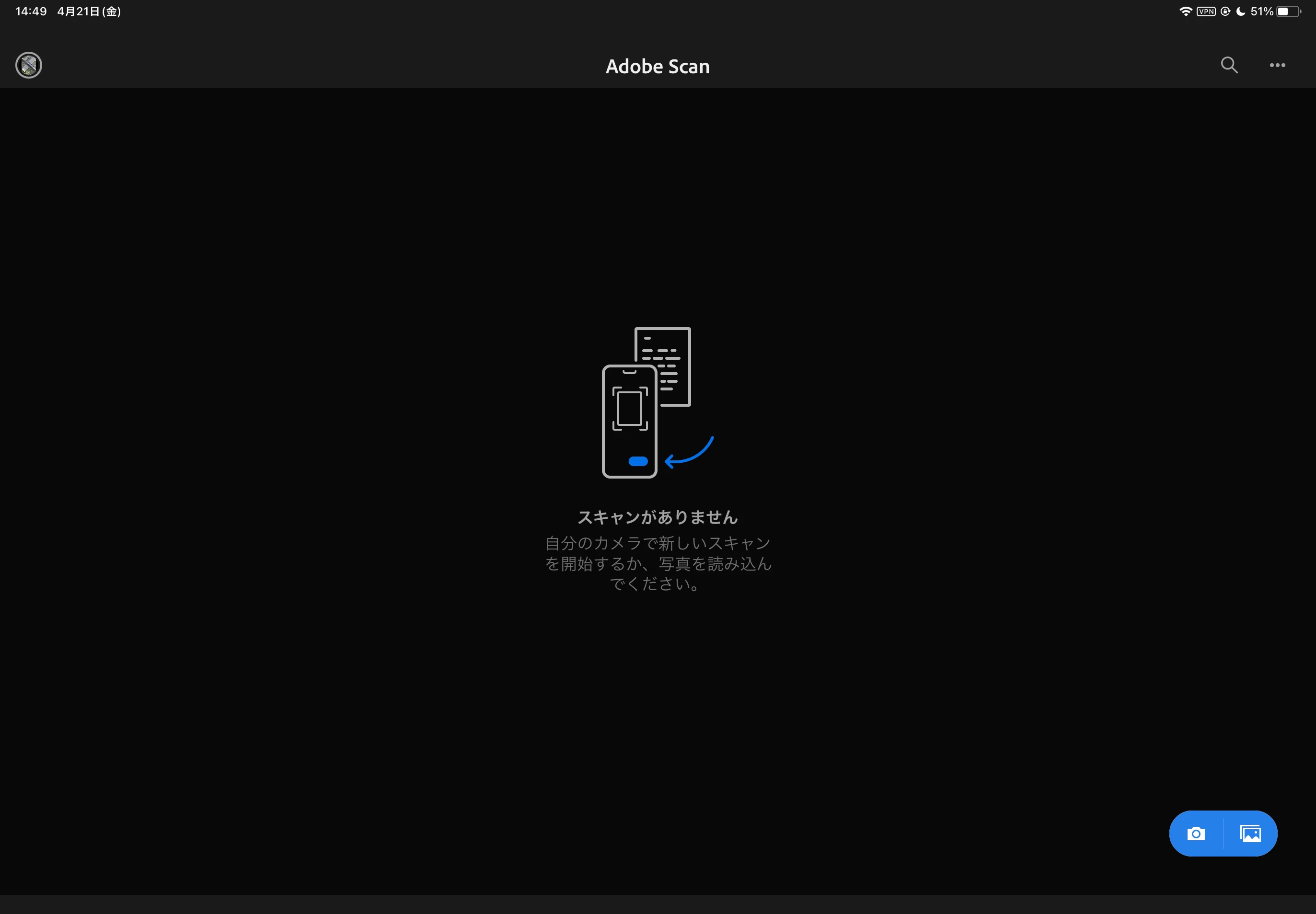 作成したPDFはCreative Cloudに保存されますがAdobe Scanアプリには保存されず、閲覧できません。