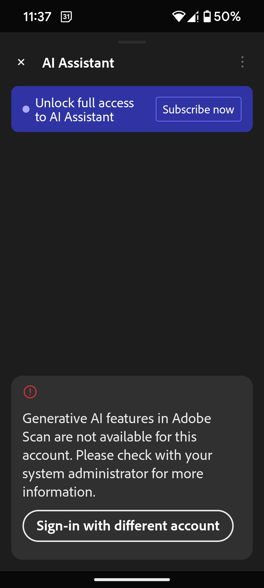 Open the Adobe Scan App > Tap on the profile icon > Under Generative AI features, Toggle on 'Enable generative AI features'
