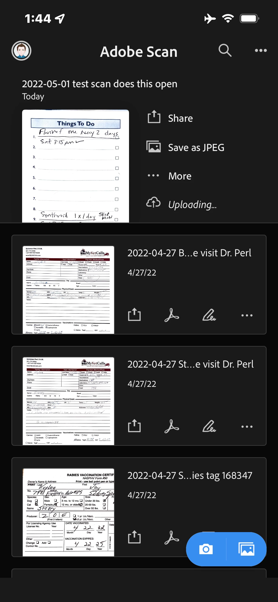 More info for troubleshooting. The newly scanned file is still uploading. Typically it takes a second or two to upload at most but still says uploading next to the thumbnail image of the new pdf file on the Adobe Scan home page of the app after 10 minutes or more.