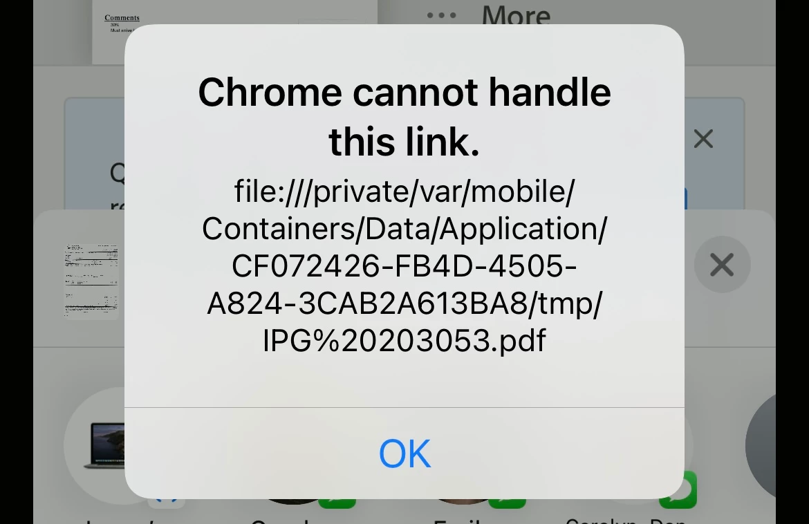 I have been using Adobe Scan for over two years. As of yesterday I could not send a scan via Chrome.I have an iPhone 12 Pro. Everything worked fine until yesterday.