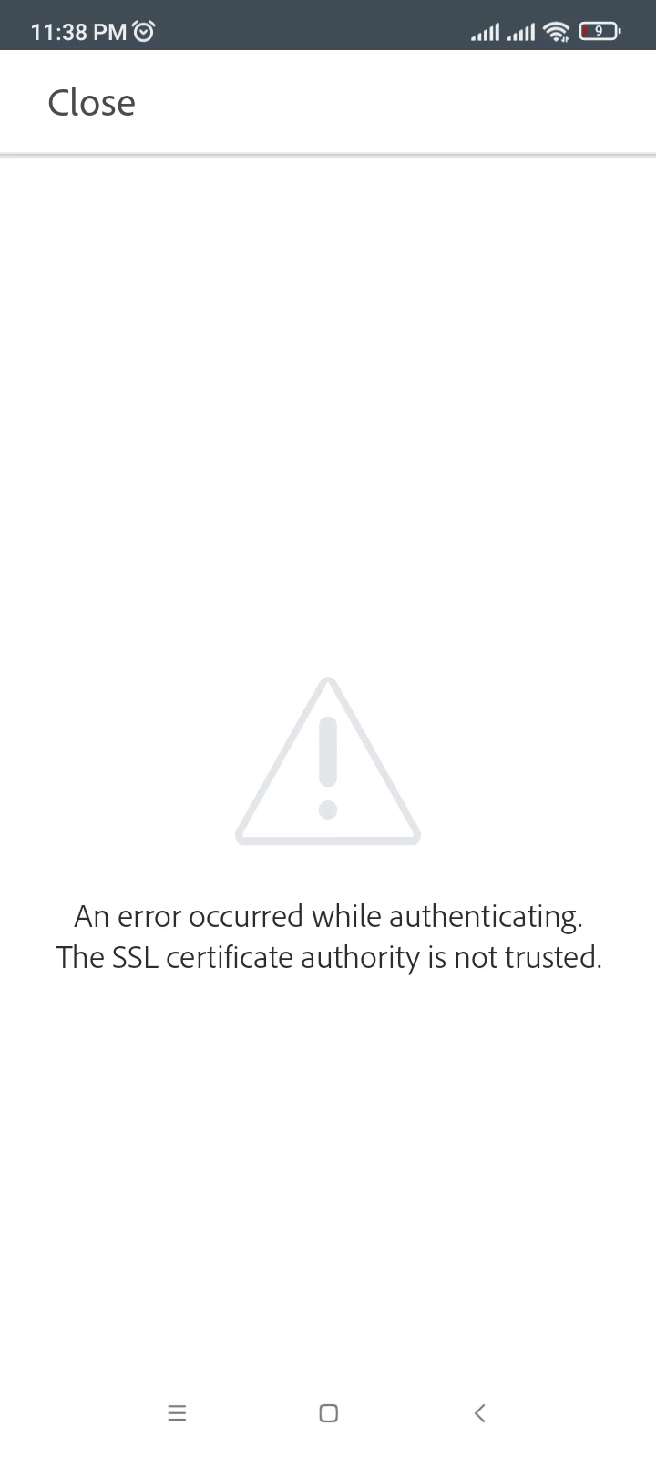 The other reason could be blocking Adobe domains on your WiFi connection. Would you mind going to Settings-> WiFi-> Disable your WifFi-> switch to cellular data and try again?