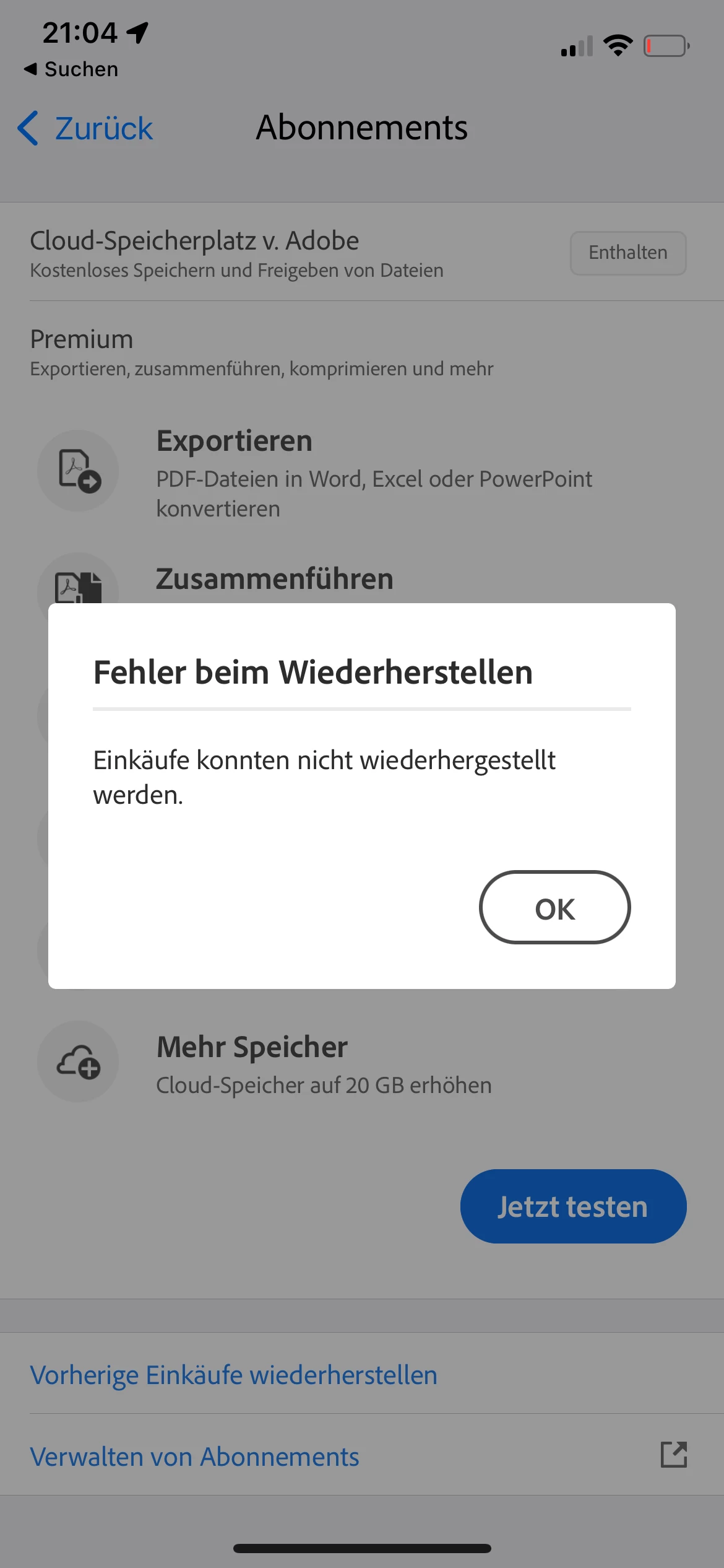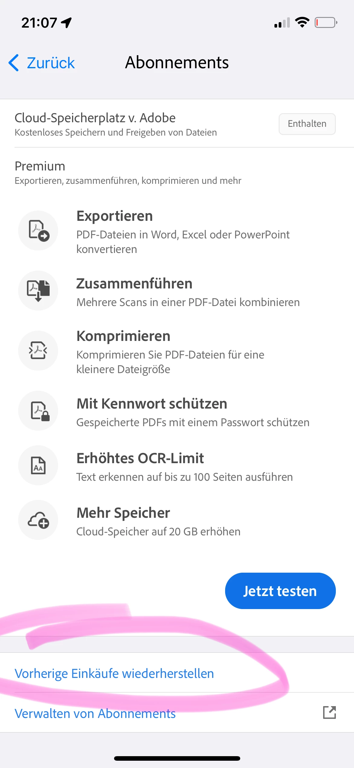 Hello, I purchased dienAdobe Scan app on 08.10.2021 through the Apple App Store. When I open the app and want to use it, I cannot restore my. Purchase not restored and can only access the premium features by subscription. How can I use the full version? After all, I paid for it.
