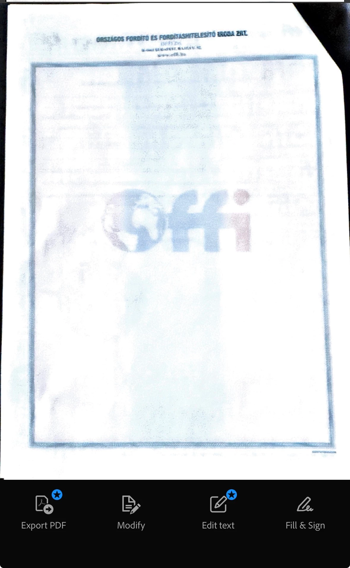 On my iPhone 15 Pro, the Adobe Scan app often (almost always) takes blurry pictures while scanning. I'm attaching one such picture, the text is unreadable. I've tried all kinds of settings, I think there might be a problem with the camera settings and the app's developer settings.