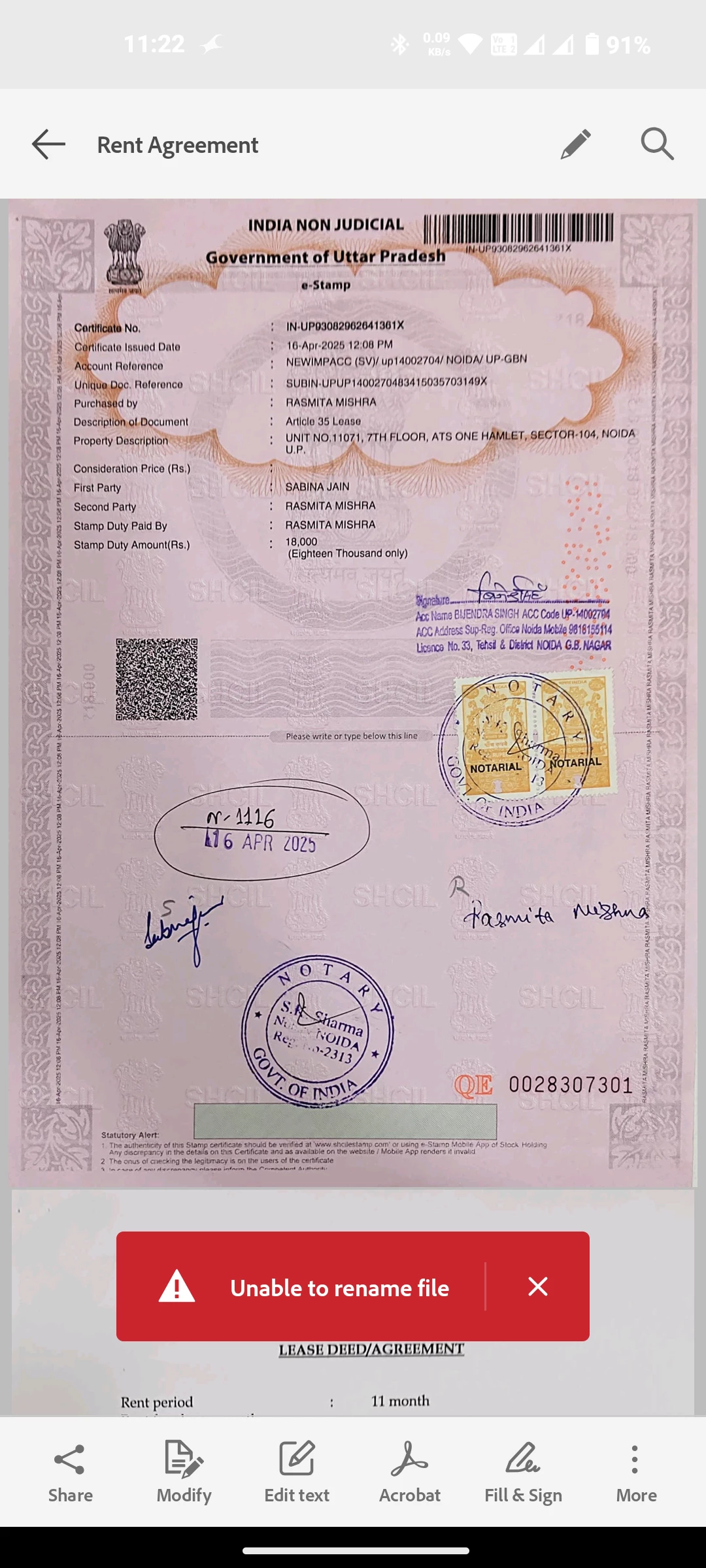 Try to logout of the app, reboot the device and re-login with the same Adobe ID and check. Also try to svae the file locally to your device and try again.