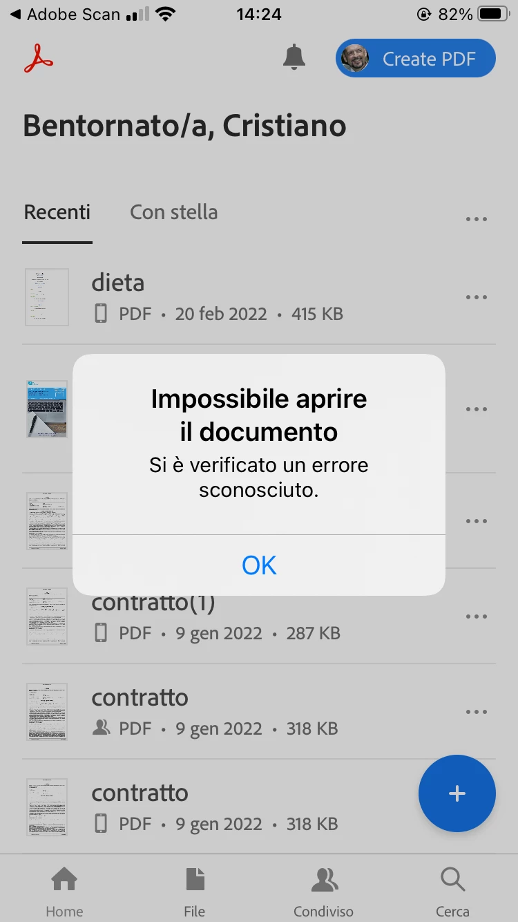 Salve, da un po' di tempo non riesco più ad aprire le scansioni con Acrobat, mi appare un messaggio: impossibile aprire il file errore sconosciuto