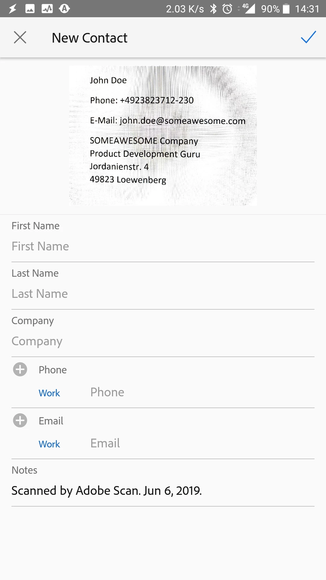 I've gleefully been using Adobe Scan to digitize business cards since it received the business card option, and it works quite well. However, I find myself wanting to scan e-mail signatures as business cards quite often, which works perfectly as long as they're printed on paper.