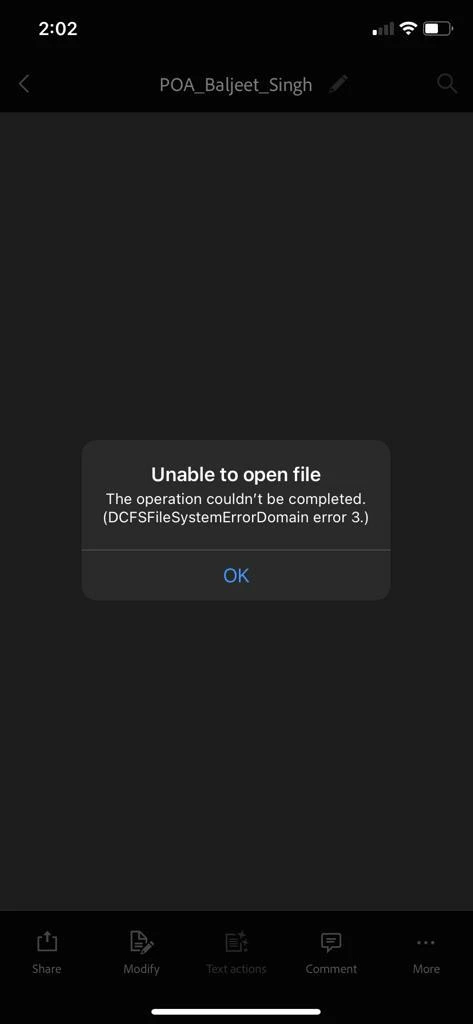 I am facing a weird problem where firstly I wasn't able to open the document and was shown am error depicted in attachment and later on rebooting moble document itself disappeared.