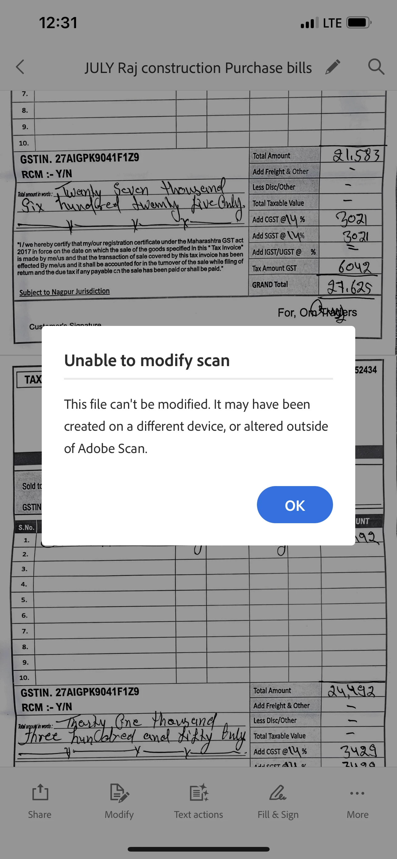 Unable to modify existing file which I created on same phone not even opened on some other device , getting error " This file can't be modified. It may have been