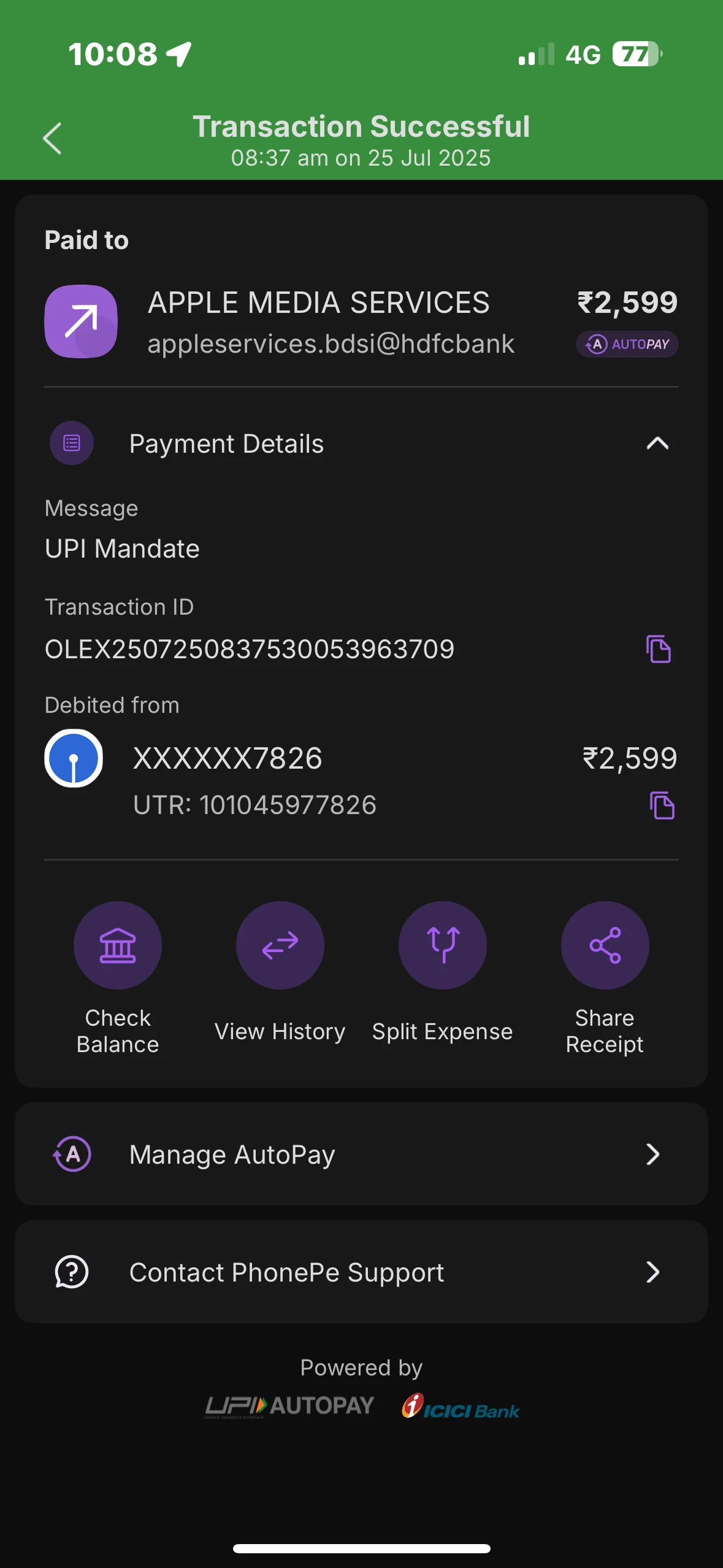 Trial started: 19 July 2025 Cancelled: 24 July 2025 (within trial) Charged today: ₹2,599