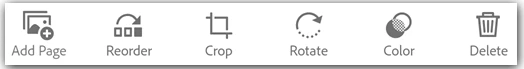 These options allow you to Add images from your device, Reorder pages, Crop pages, Rotate pages, Adjust the color, Delete pages