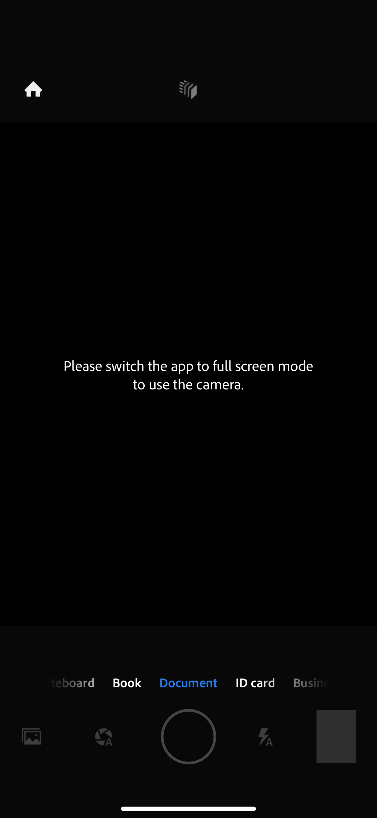 I get "Please switch the app the full screen mode to use the camera" every time I try to scan something. It started a few days ago. Before then the app worked flawlessly. I use this app for scanning all day every day. I'm having to use another phone currently and that is a pain.