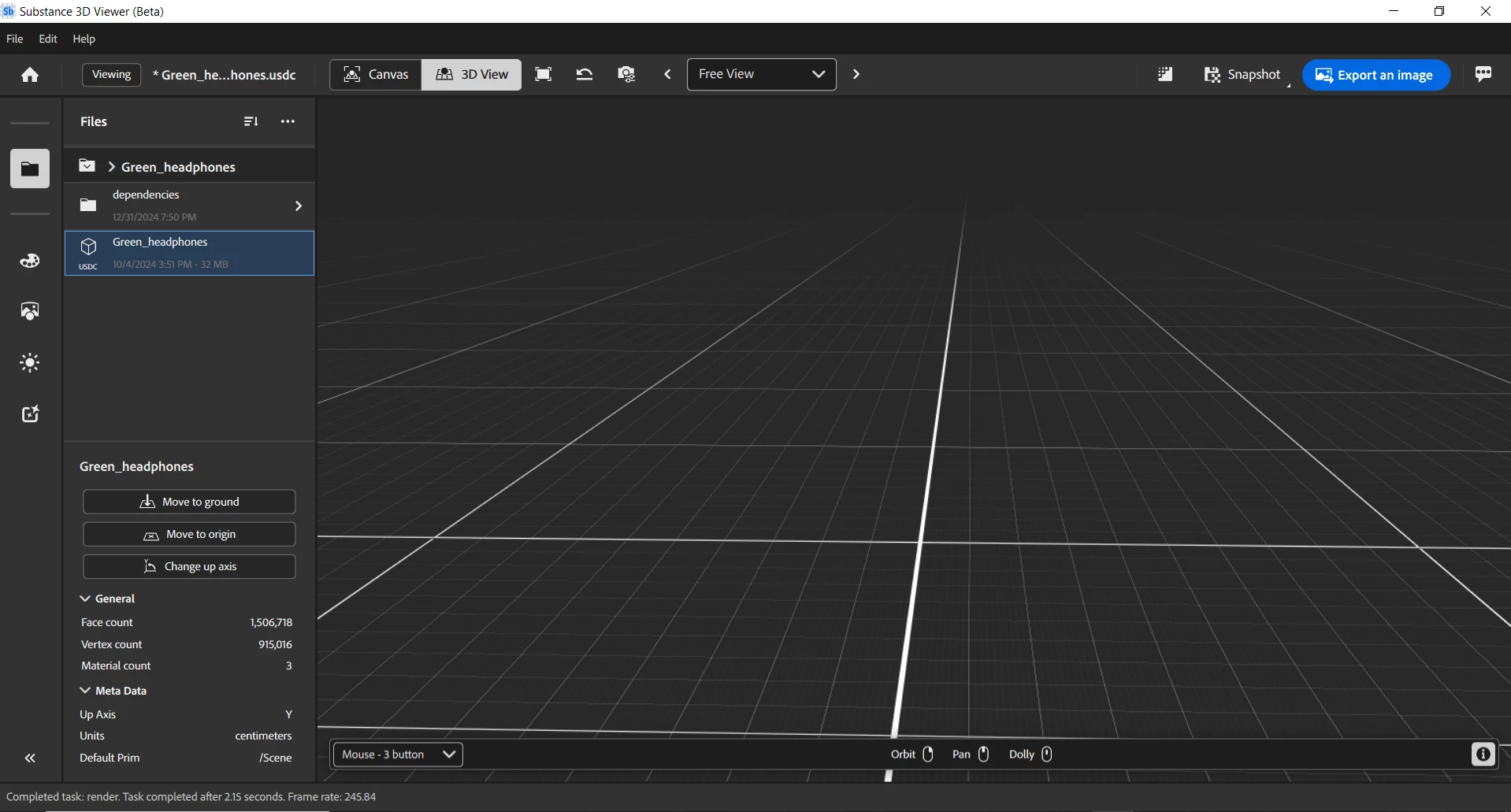 I really need help with this issue, I downloaded both the Substance 3D Viewer and Photoshop (beta), and whenever I try to open a 3d file, nothing seems to appear, it's just a blank screen with the grid lines but nothing shows there, I tried rendering an image to see if the software is able to read the object but isn't able to make it appear at the viewing stage for some reason and the render showed the object which proves my theory. Note: I've tried dragging a file into the screen and opening it from the main menu, but nothing seems to work. // App Version: 0.20.0