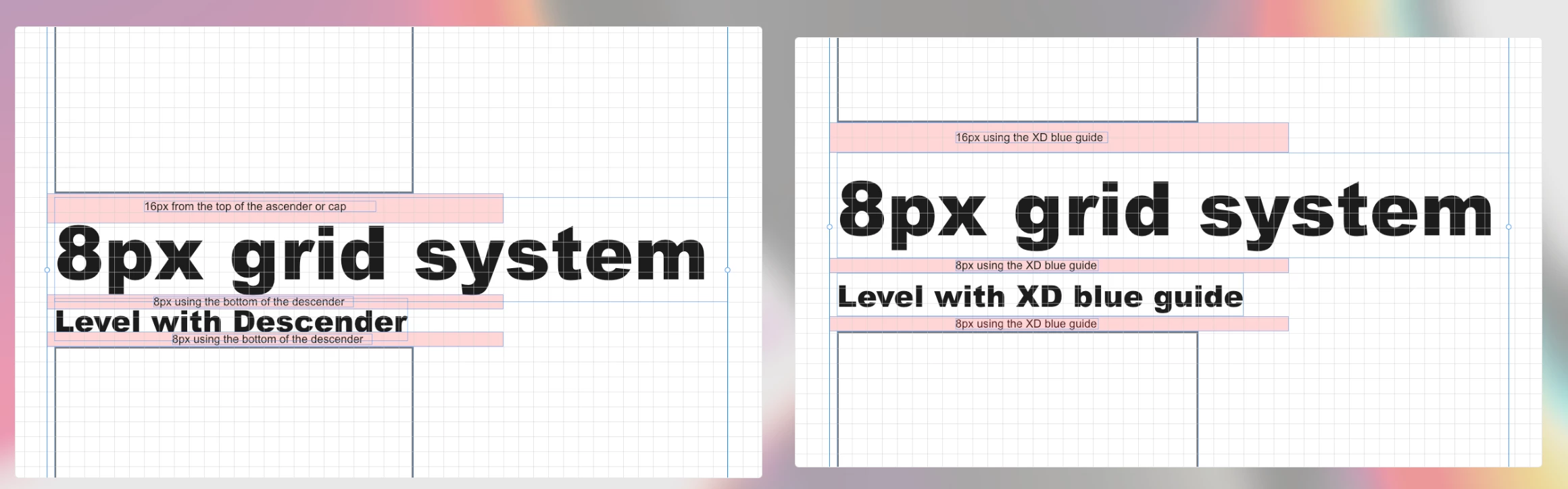 8pt Grid system in XD using a soft grid - Spacing in XD - Descender, Baseline or Blue XD guide?