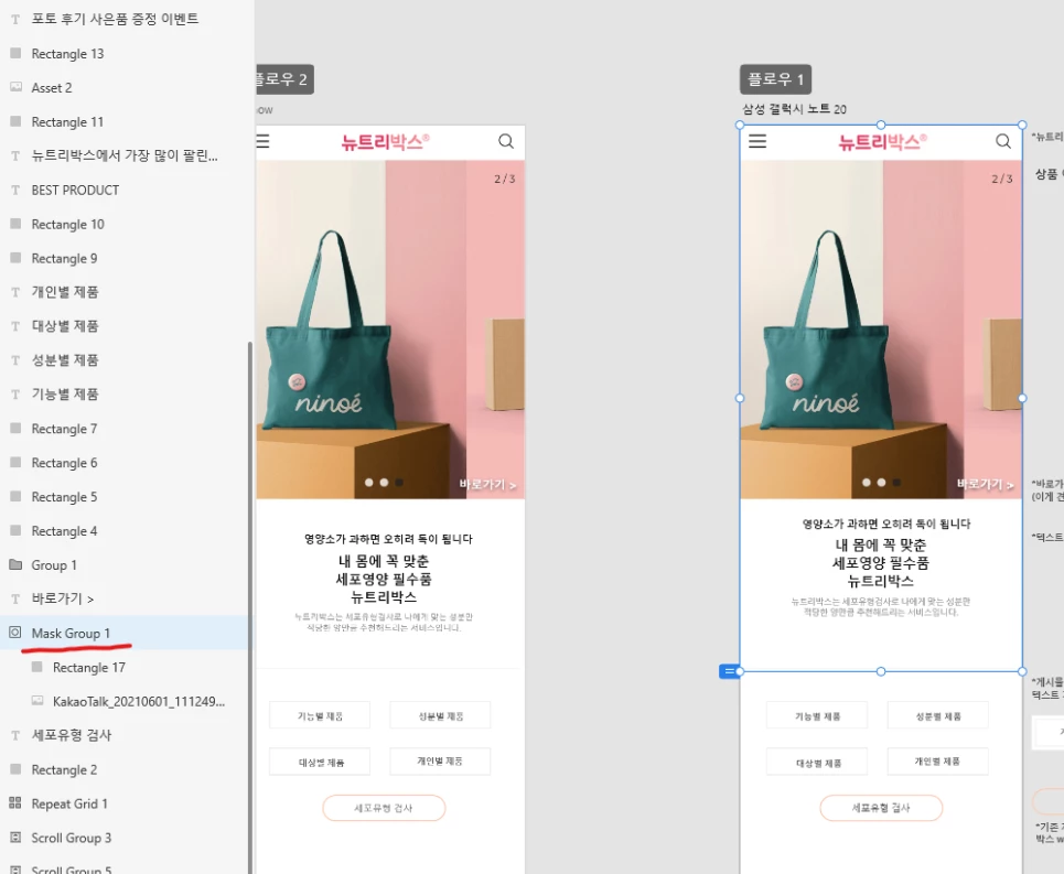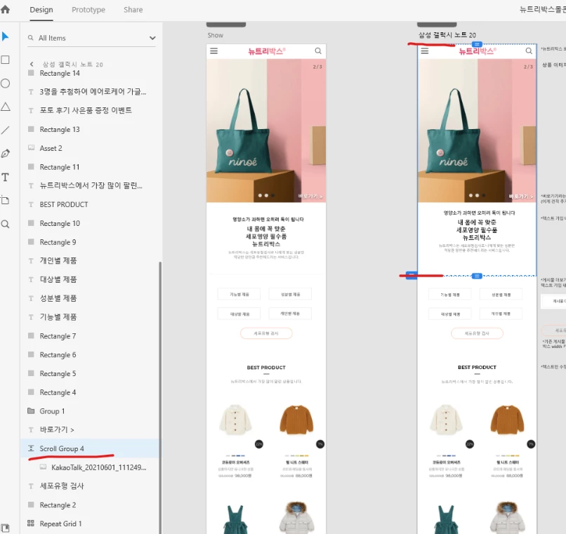 I suspect you wanted to copy only the image with the bag, and didn't know how to crop it, so you used the scroll group to do that, which is the problem. You should use a mask group for this instead, which doesn't scroll, and won't cause that problem, like this: