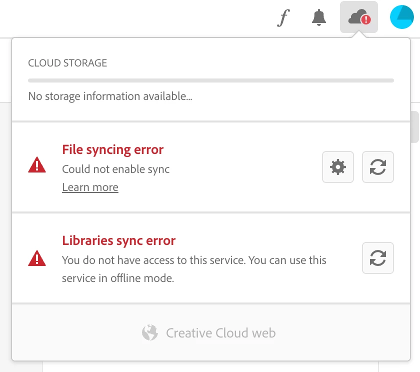 Adobe Creative Cloud - cut off from files, no synchronization.