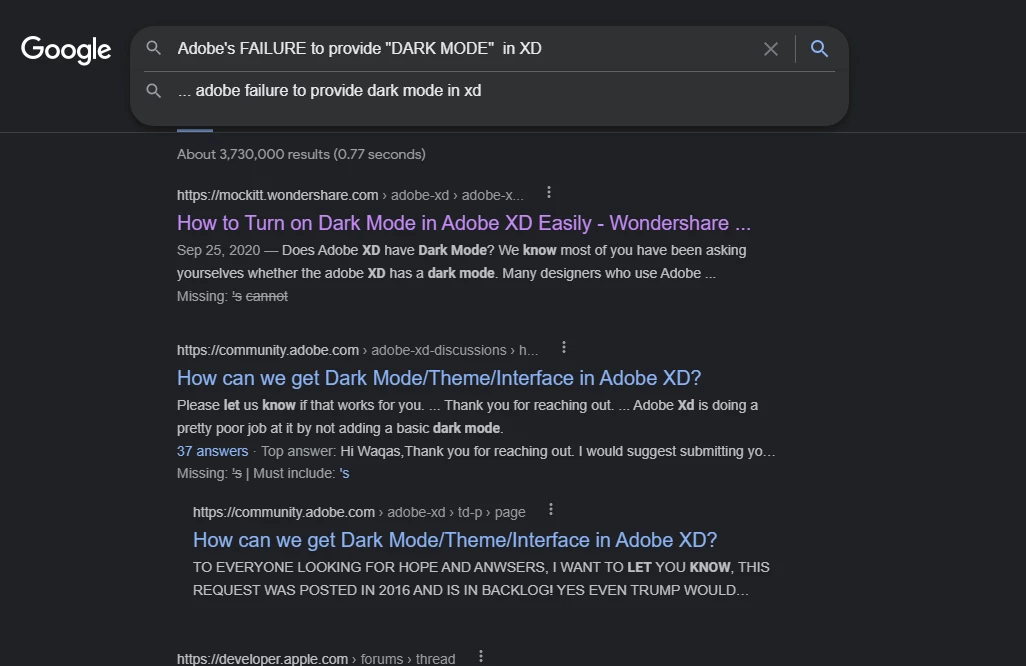 Heck, even Google has a dark mode. Why doesn't Adobe hire better developers?