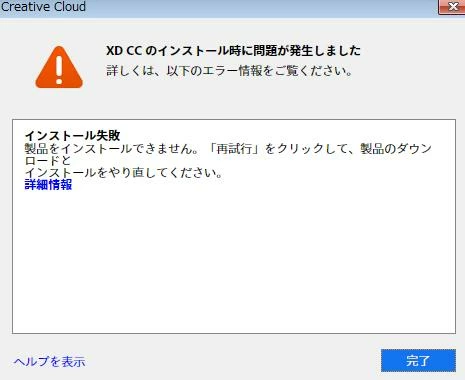 ADOBE XD インストール失敗 :Exit Code: 190