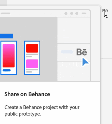 Share a design from XD to a new Behance project, and publish the project. |