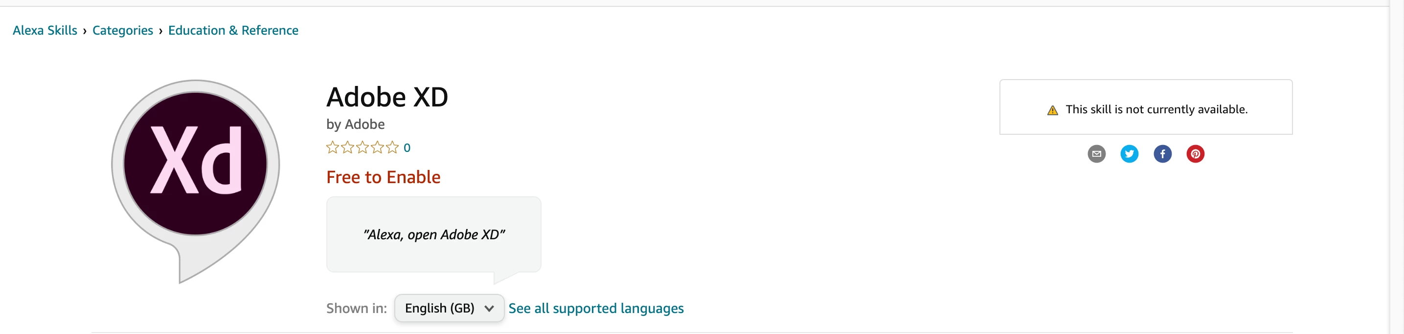 Adobe XD Alexa Skill is not currently Available?