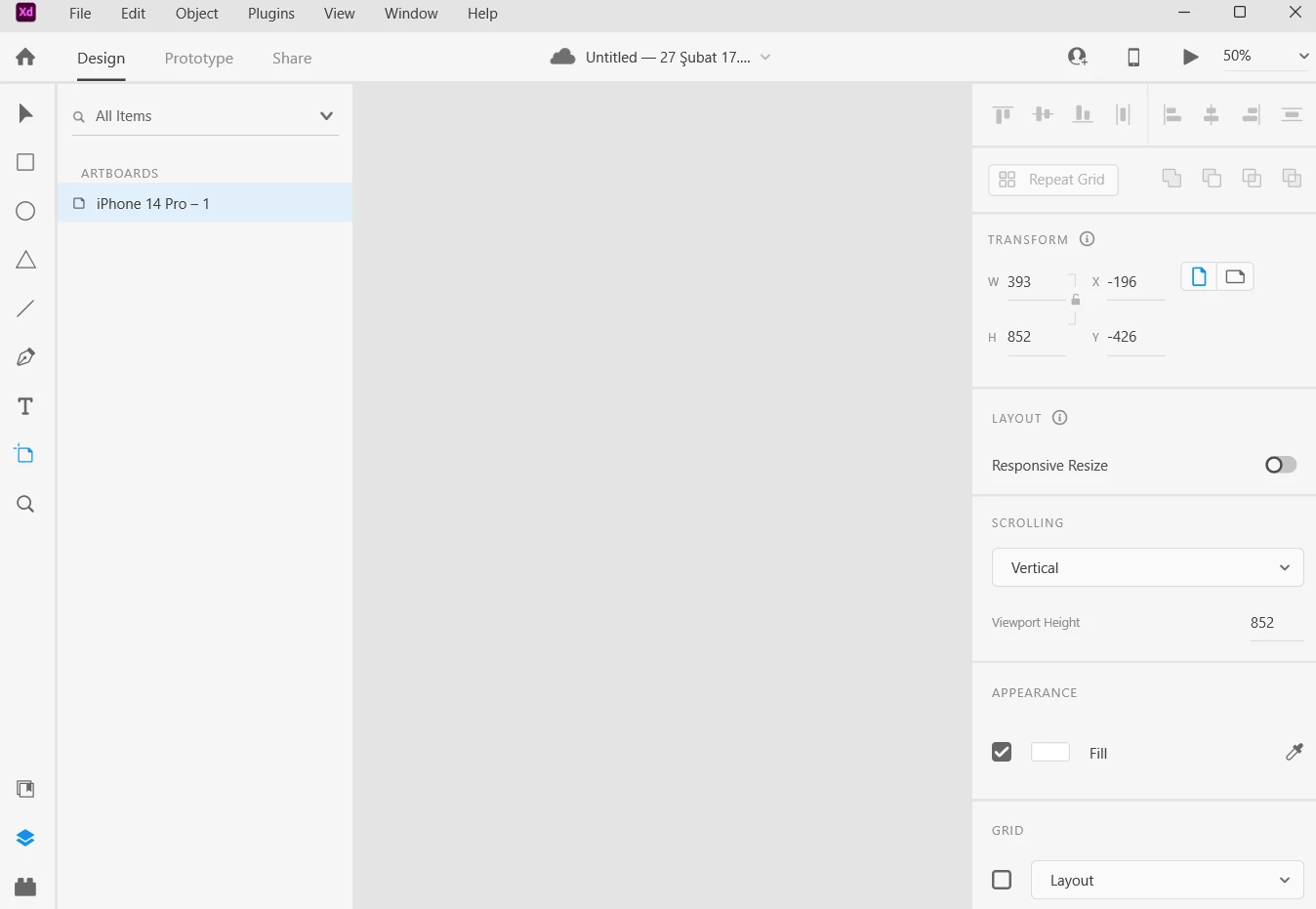 Adobe XD artboard don't show