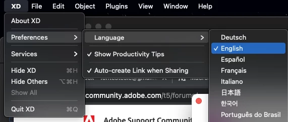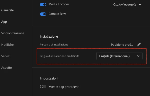 - I haveCreative Cloud in Italian (I can't uderstand how set it in English)