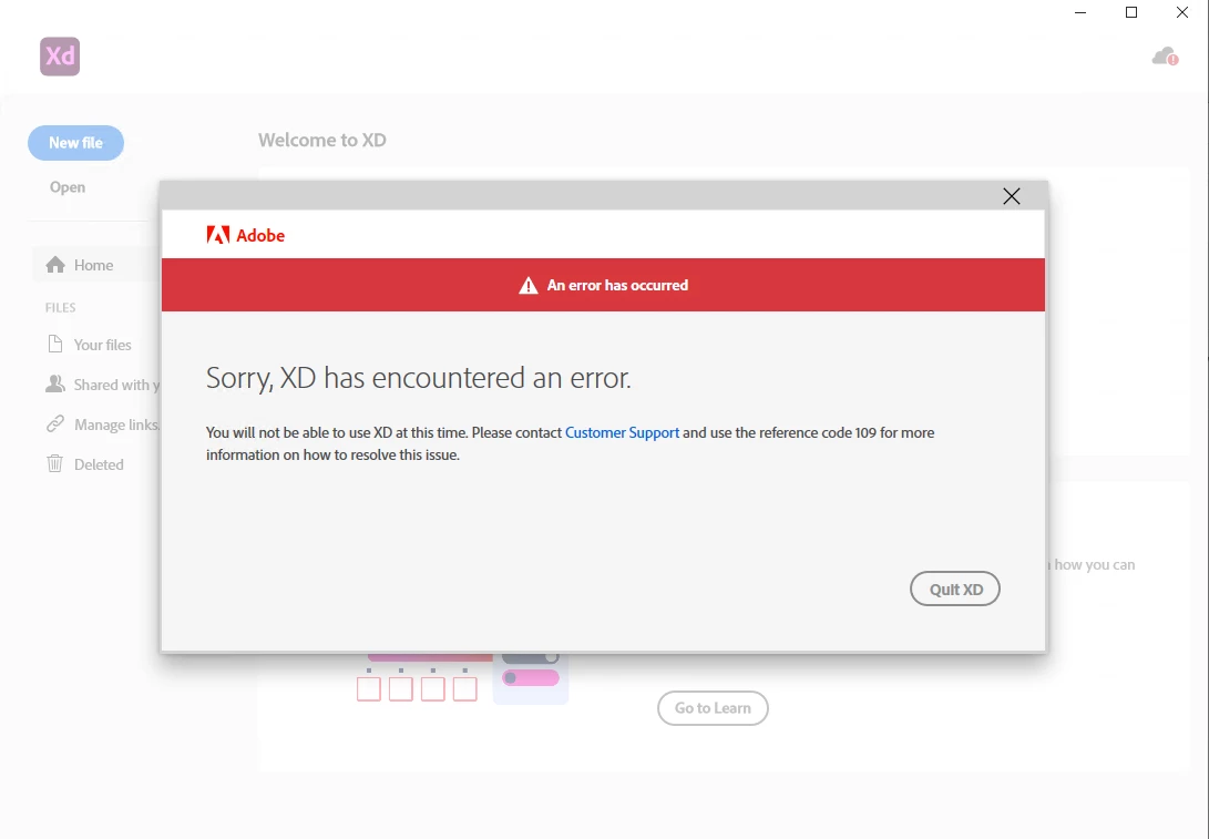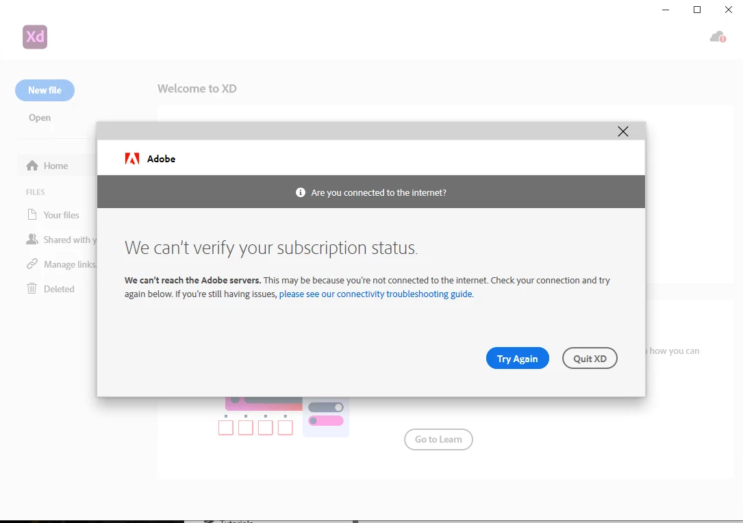 Adobe XD not verifying subscription status on latest update