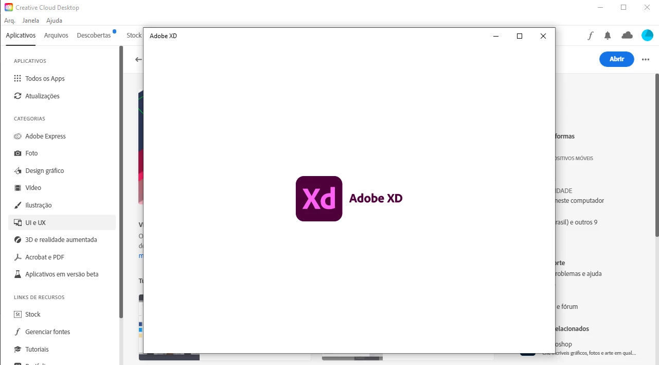 Boa tarde! Então, quando vou abrir o Adobe XD, ele não abre, ele fica na tela que mostra abaixo e não sai dela. Já tentei desinstalar o aplicativo, porém não foi.
