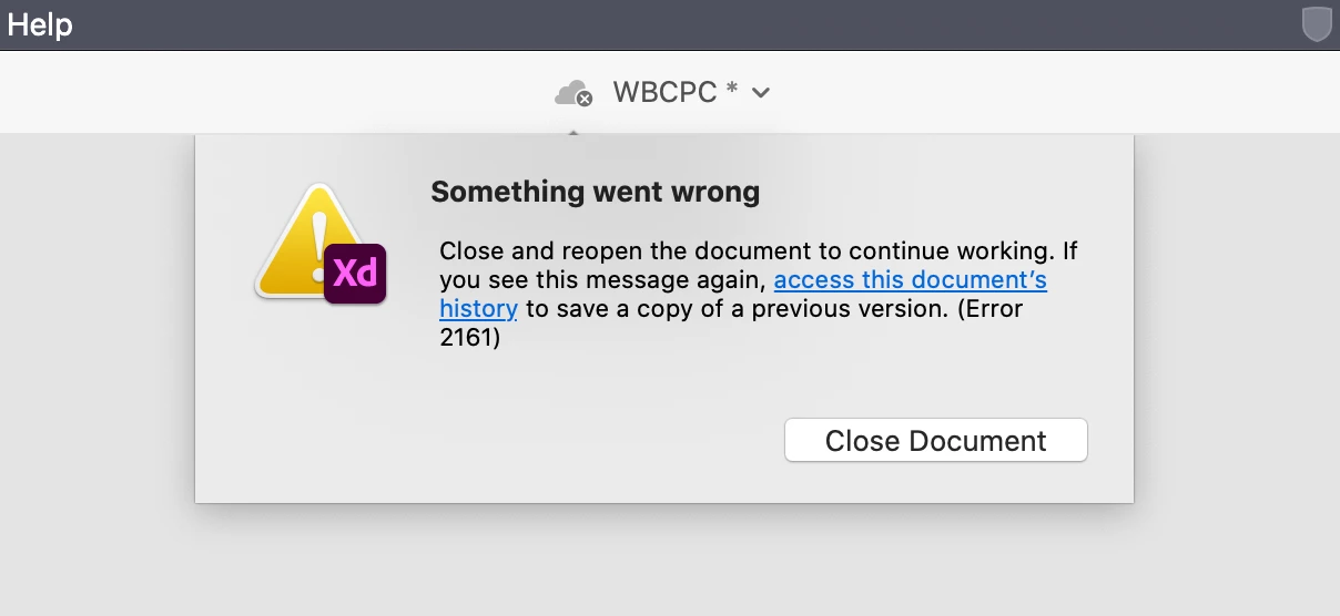 Adobe XD Shared cloud file freezes while loading