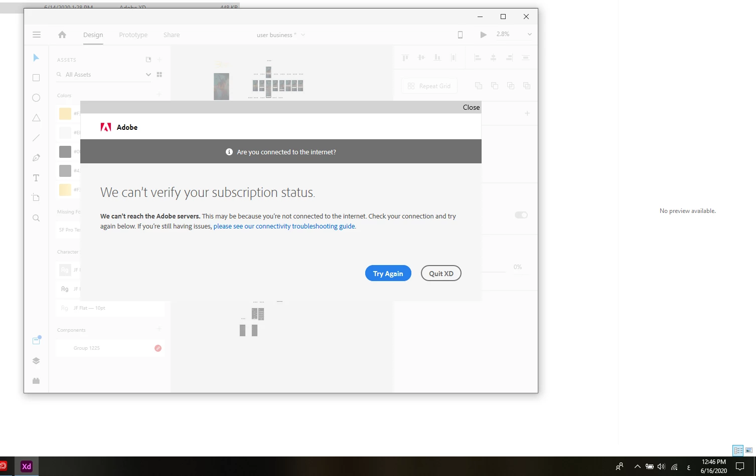After installing the new version of the adobe xd program, when opening the program it appears as a pile and the program is closed, and also a message appears to me that I am not connected to the Internet on the code that I am connected to the Internet