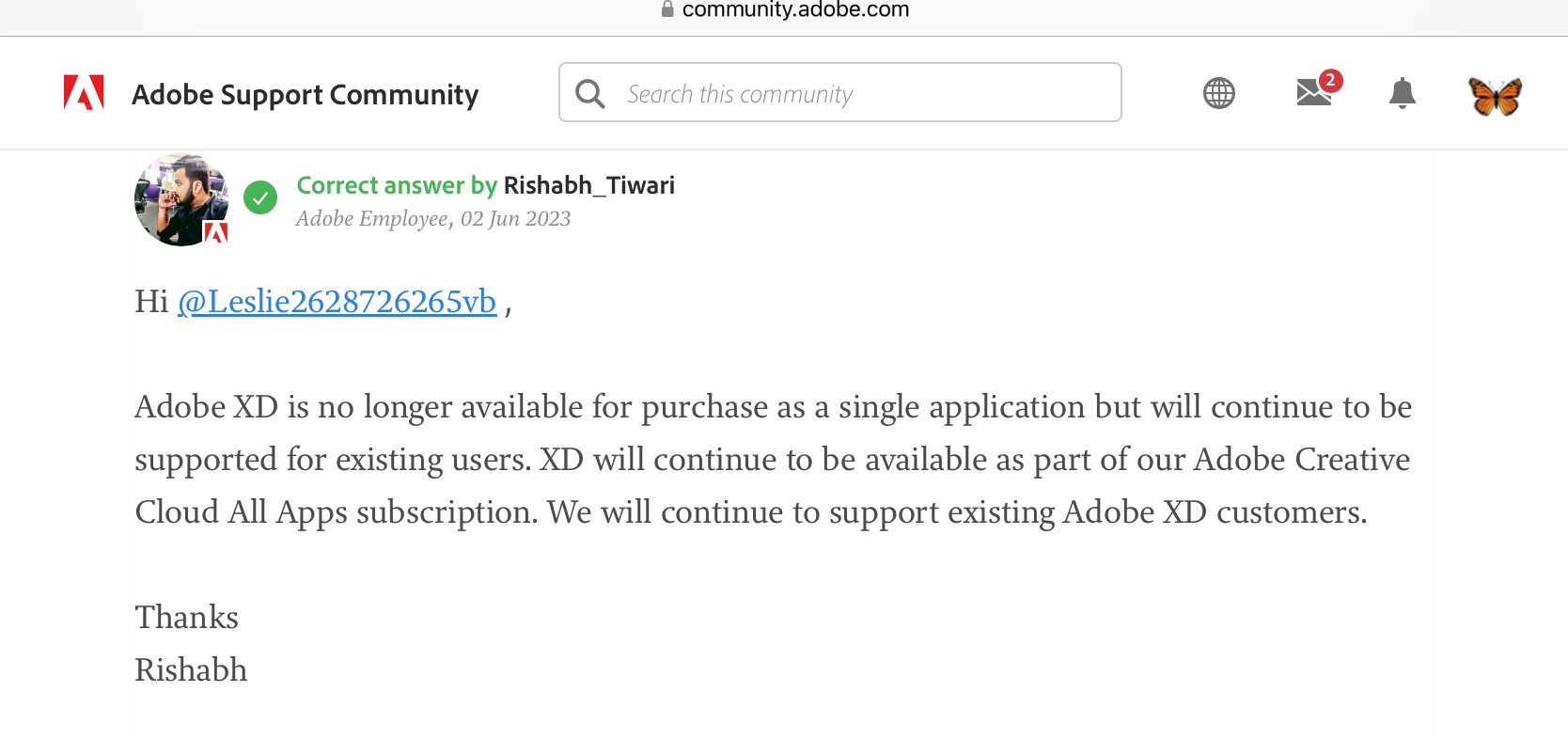 I contacted support and they said that the only version of Adobe XD is paid (which is not true, I've been using the Starter Plan for free for a long time)