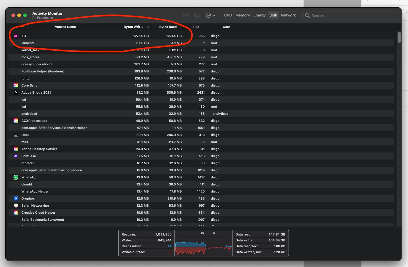 XD is filling up all my Hard Disk space with a single open document with only , is realy annoying me since i can't even save my files, my computer literally freezes because of XD extensively use of hard disk space.