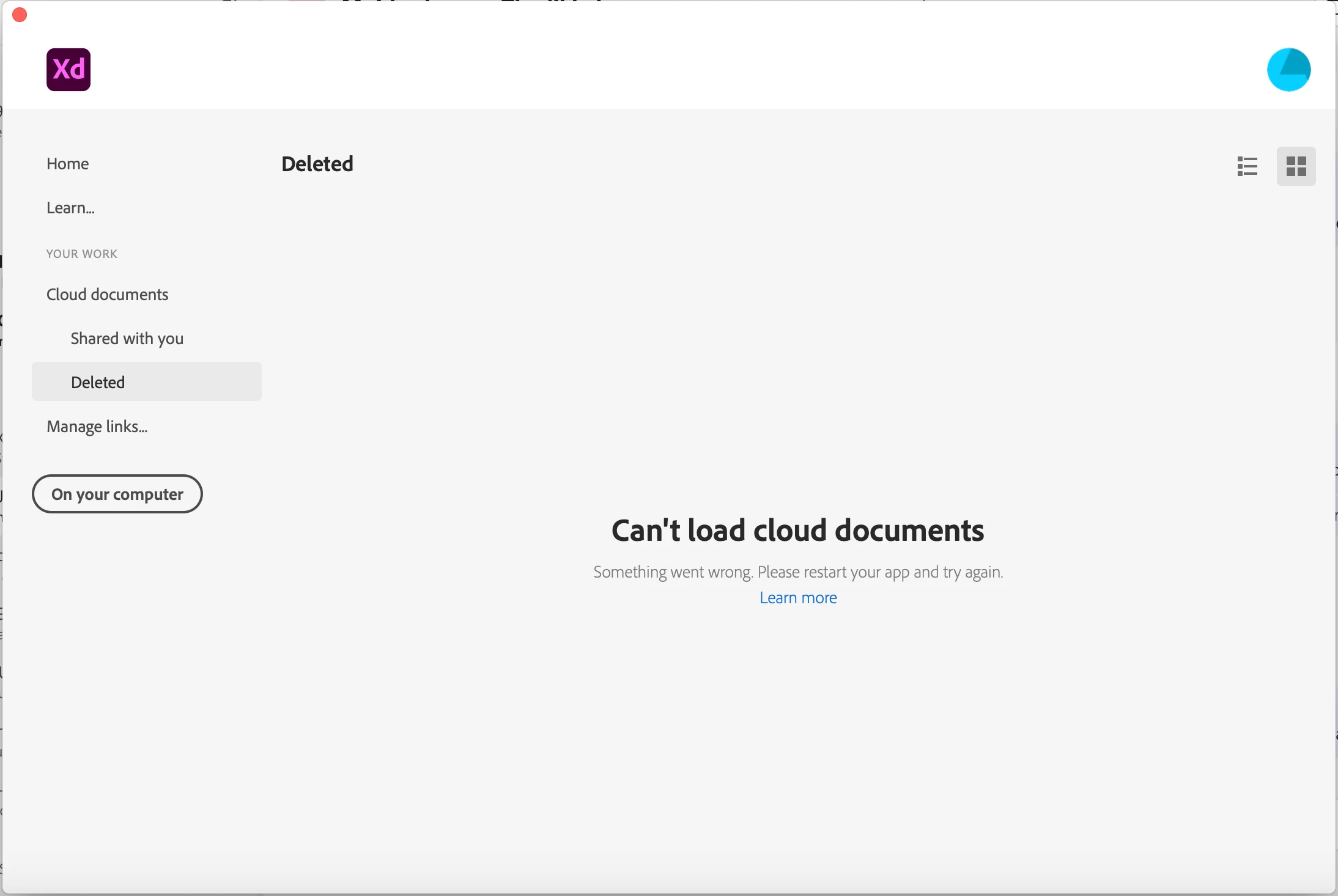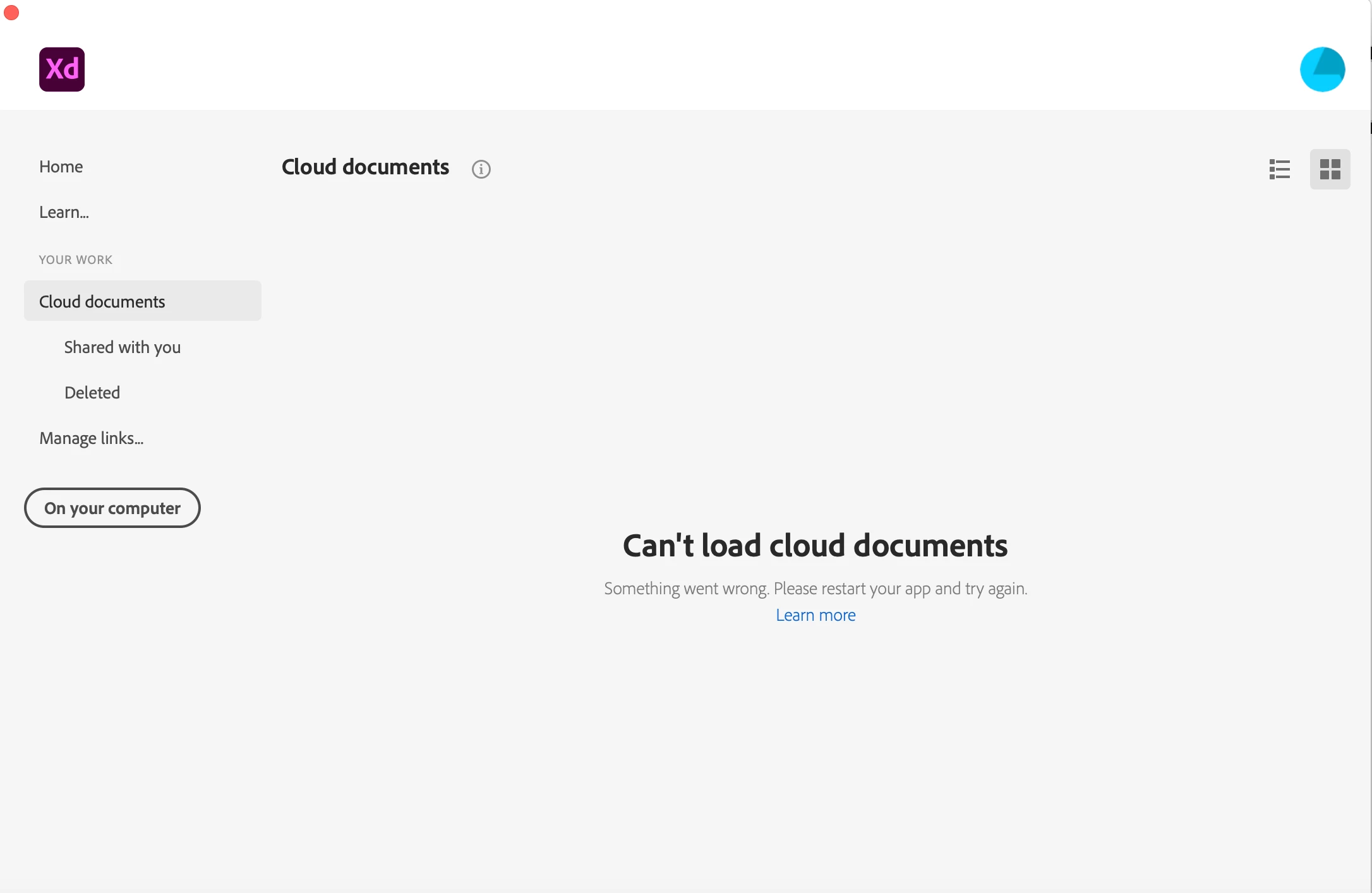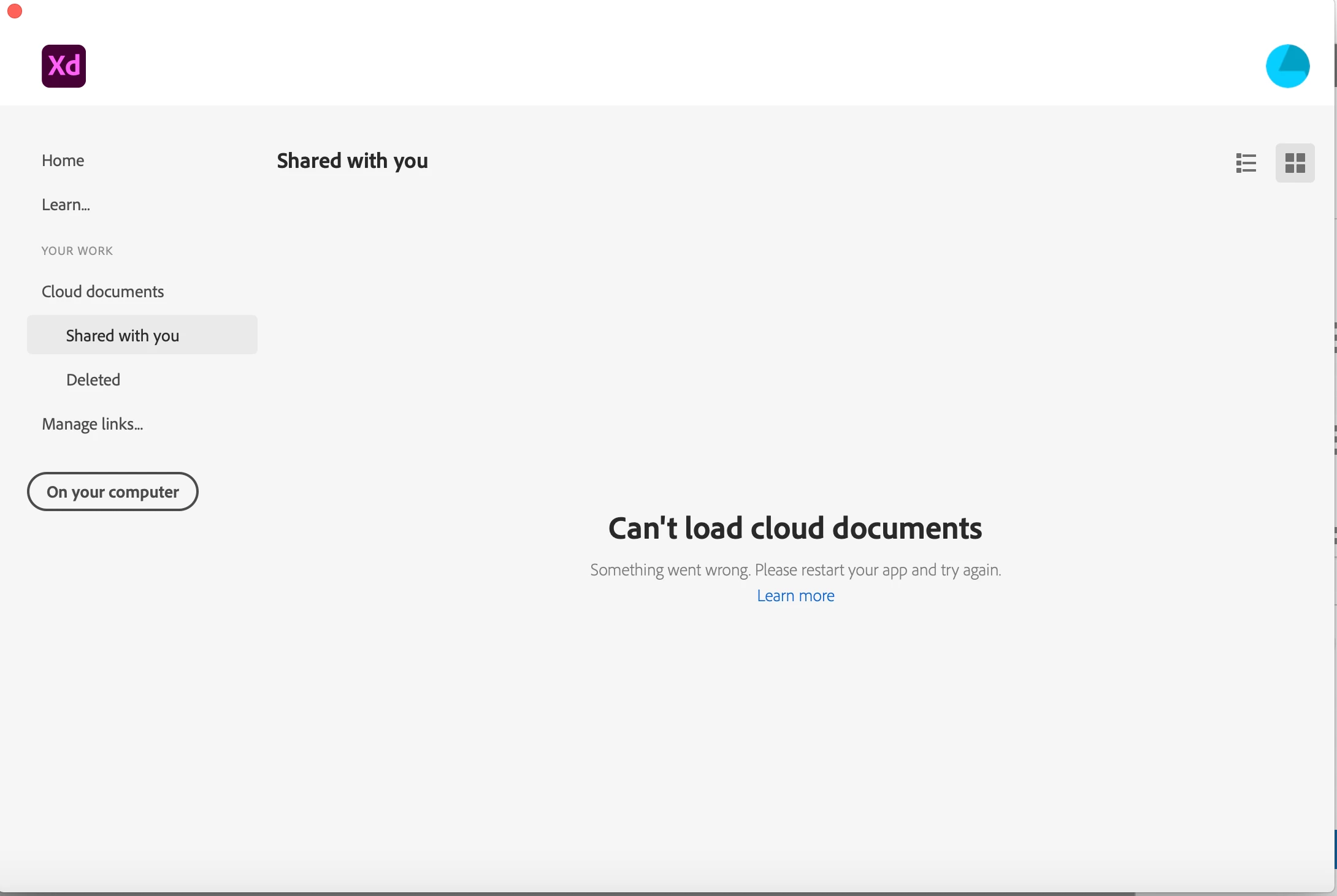adobe XD Ver 44.0.X unable to load cloud documents under your work - Enterprise account