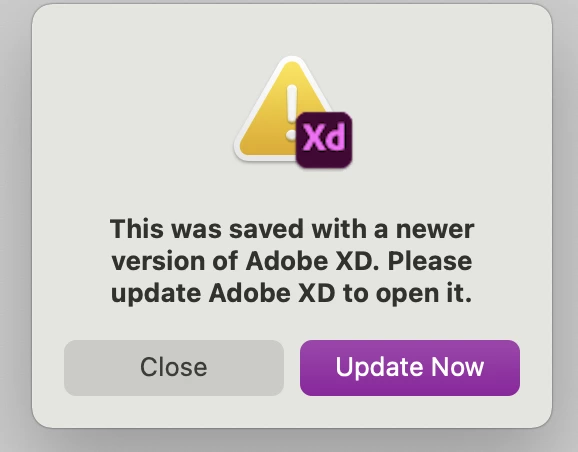 I have a MacOS Big Sur and on my Adobe CC it says my Adobe XD is running the latest version at 39.0.12, whereas my teammate has a Windows PC running XD version 40.0.22. Due to that we can't access/work on the same file. And when he tries to access the file I share I now get this error.