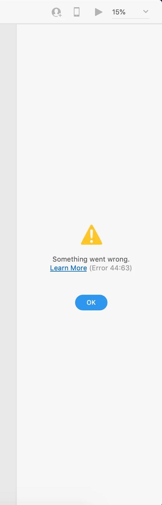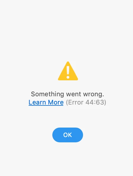 Something went wrong. Learn More (Error 44:63)