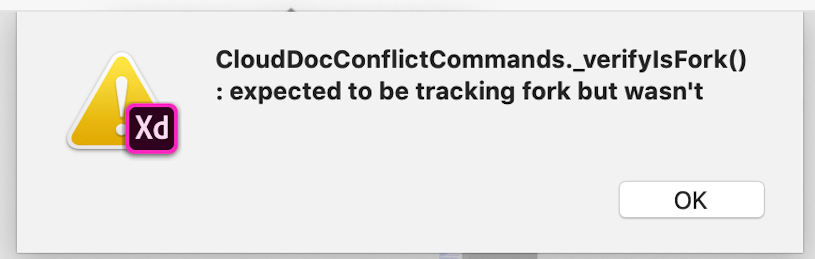 I have tried to open the document numerous times this evening and recieved the same 'Document unavailable' message and the subsequent error  below 'CloudDocConflictCommands.…" before XD quits entirely.