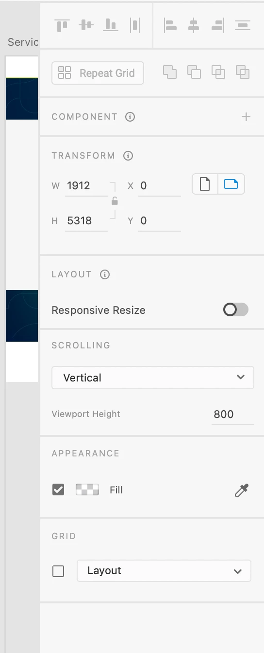 I looked in the Artboard settings of my project and changed the Viewport to 800 rather than having it set to see the entire page. Also, make sure Scrolling it se tot Vetical and not None.