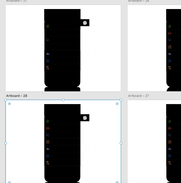 Artboards are filled with black