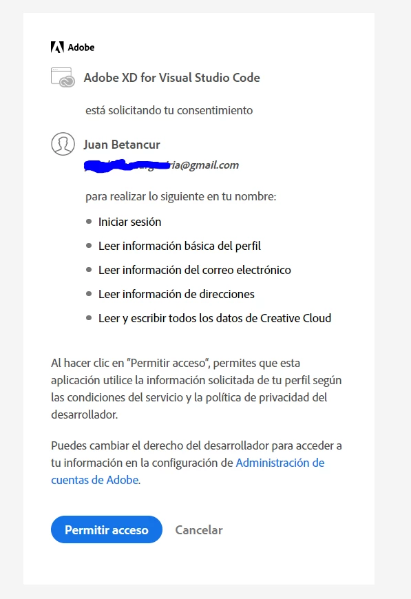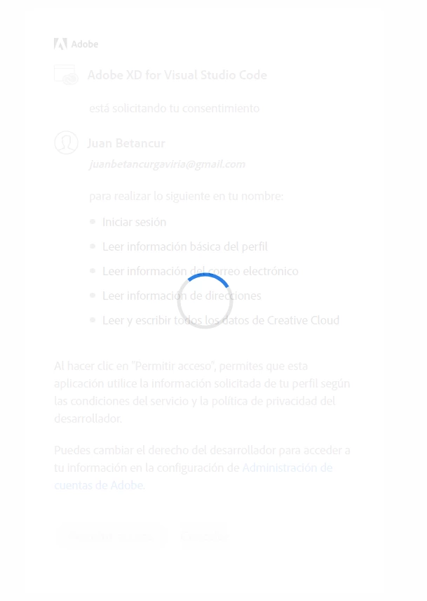 Then you clic allow access and nothing happens!! It stays that way and nothing happens in Visual Studio Code. I raised a chat for Support and they said that they could not help since this is on Visual Studio Code and they can only offer support on the software itself. My opinion is that Adobe should not be putting in the market plug ins with authentication problems (other people is having the same issue and they should have had a tutorial for this by now!!) How frustrating!